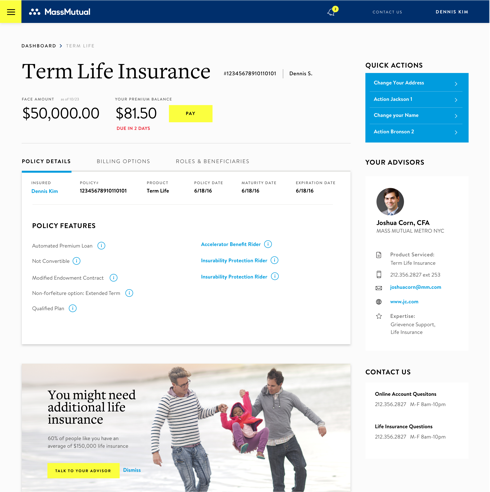 We designed a dashboard with help from the UX Team that was scalable and had the right information in the right place for different customer types with different products and plans.